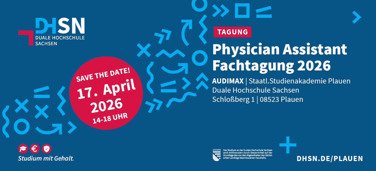 Besuchen Sie uns am 17. April 2026 an der Dualen Hochschule Sachsen in Plauen und erleben Sie einen Nachmittag voller interessanter Diskussionen und Networking-Möglichkeiten. Verpassen Sie nicht diese Gelegenheit, sich mit anderen Physician Assistants, Ärztinnen und Ärzten und gesundheitspolitischen Akteuren auszutauschen und Ihr Wissen zu erweitern.
