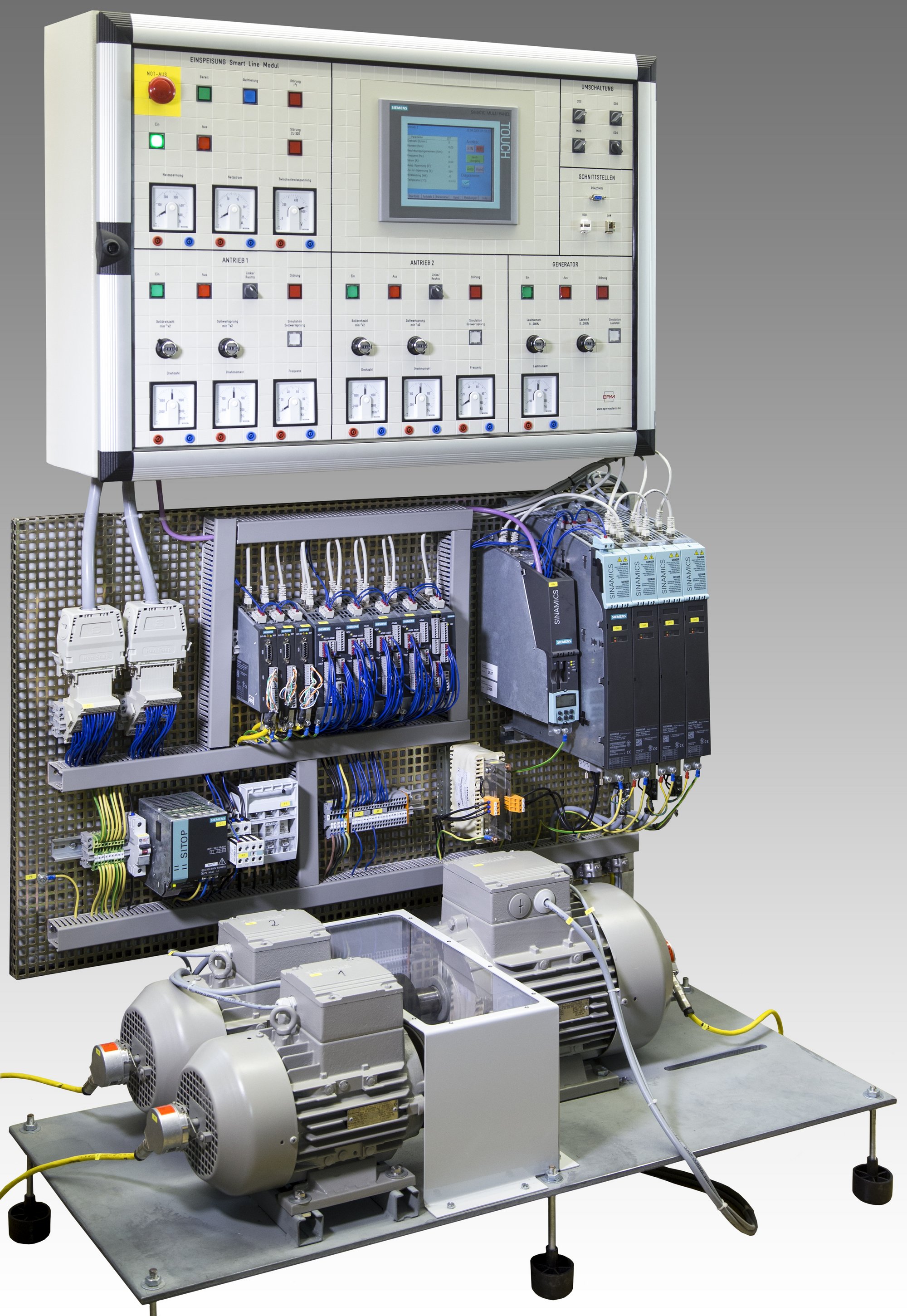 Sinamics-Umrichter mit zwei SIEMENS-Antriebsmotoren und ein SIEMENS-Generator