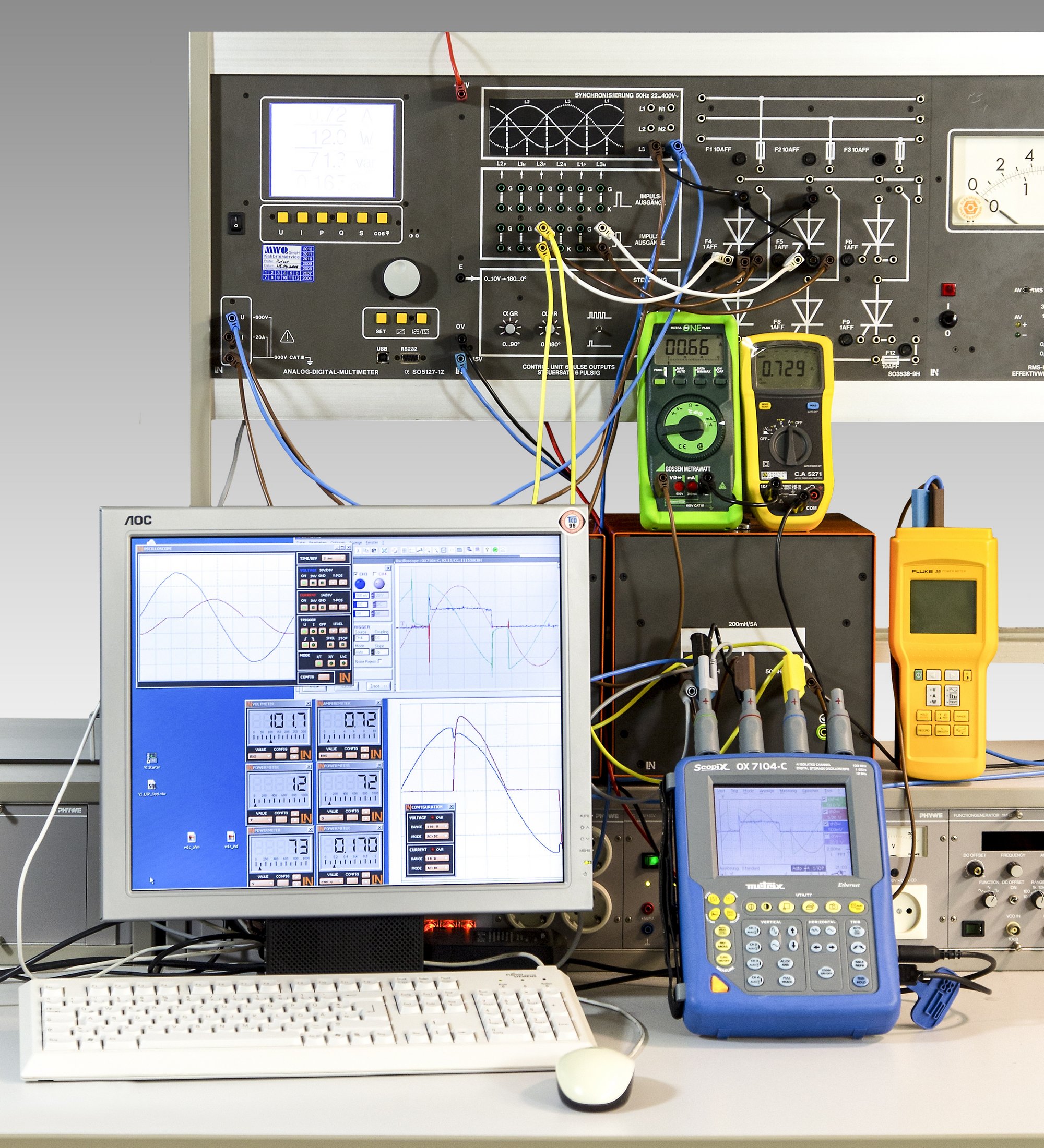 Schwerpunkte hierbei sind das Aufnehmen der Strom- und Spannungsverläufe, die Ermittlung von Kennlinien, die Bestimmung spezifischer Bauteilparameter sowie die Analyse von Netzstörungen und Oberschwingungen.