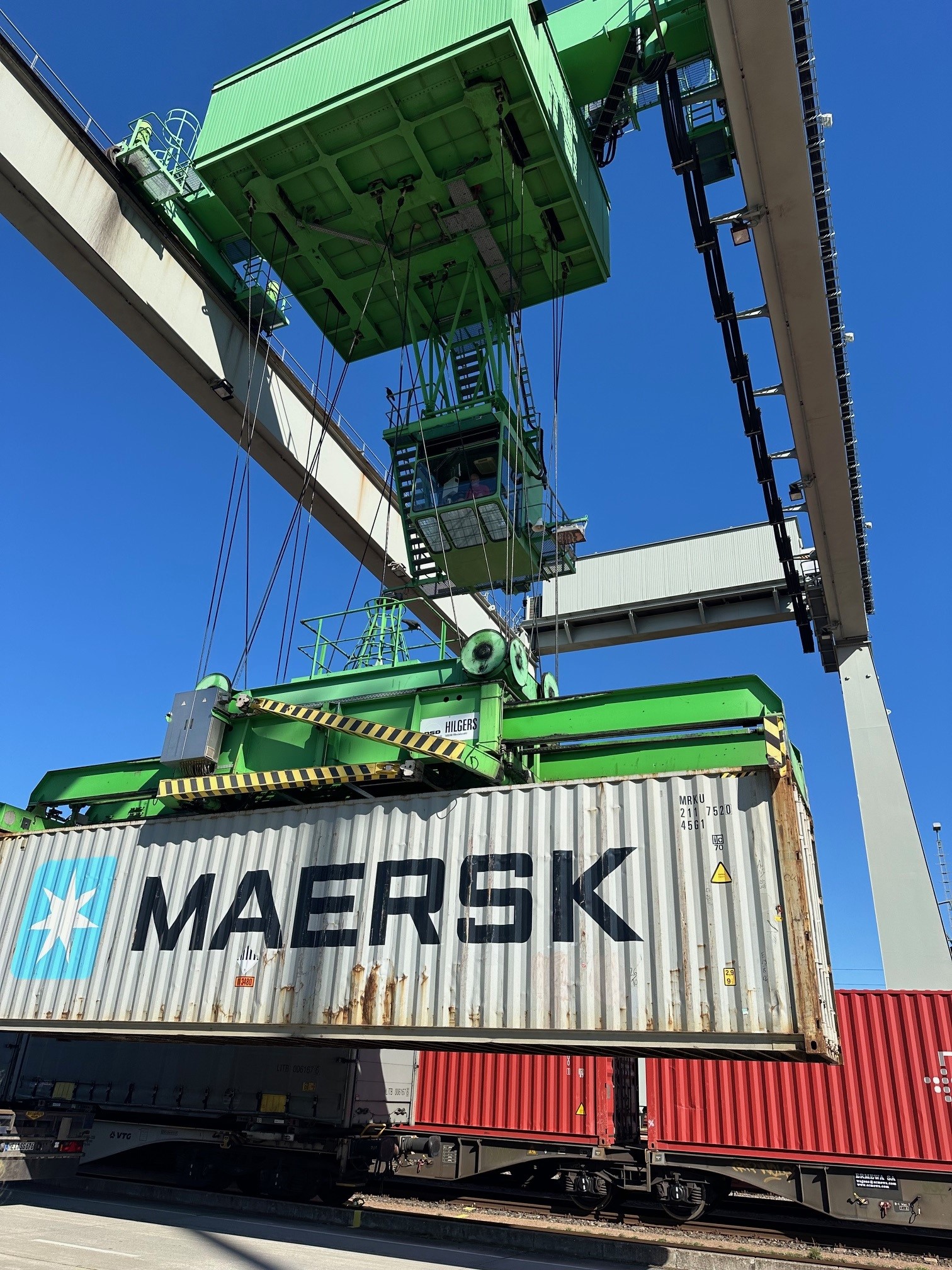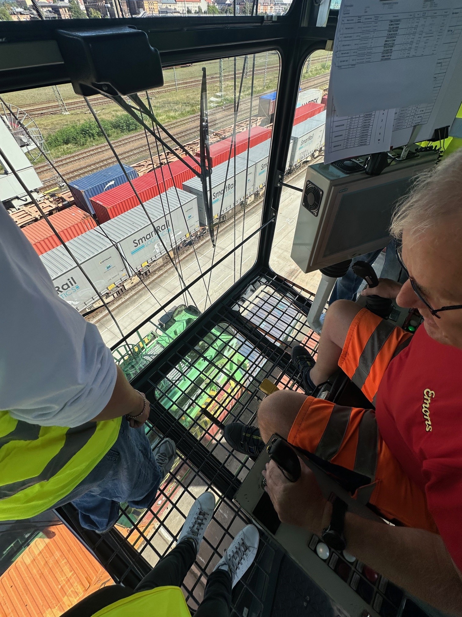 Es war sehr spannend, neben den theoretischen Grundlagen aus dem Studienalltag auch einen Einblick in die Praxis zu bekommen. Frau Uhlmann, die Leiterin des Terminals, informierte uns über die Abläufe und Prozesse rund um das Terminal. Wir konnten ihr alle unsere Fragen zum Terminal stellen. Das Highlight der Exkursion war der Umschlag eines Containers, den wir aus dem Führerhaus des Portalkrans aus nächster Nähe beobachten konnten.