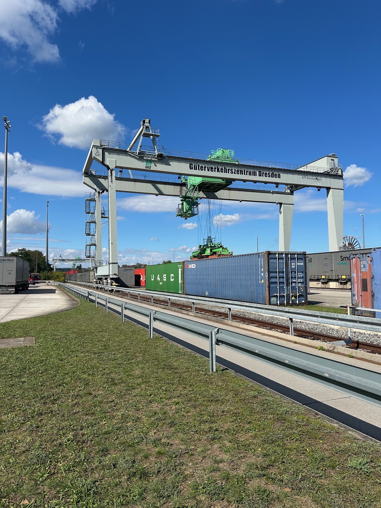 "Im Rahmen unserer Exkursion zur Emons-Rail-Cargo GmbH in Dresden hatten wir die Gelegenheit, den Umschlag von Sattelaufliegern und Containern zu beobachten.