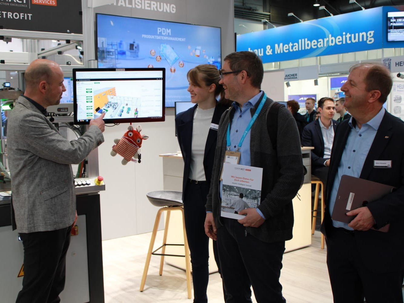 Ein Highlight des Tages war die Demonstration der eigenen Arbeiten einer Studentin der Technischen Informatik am Messedemonstrator ihres Praxispartners. Dies zeigt, wie das Duale Studium funktionieren kann: Chancen, Verantwortung und Wertschätzung gehen Hand in Hand.