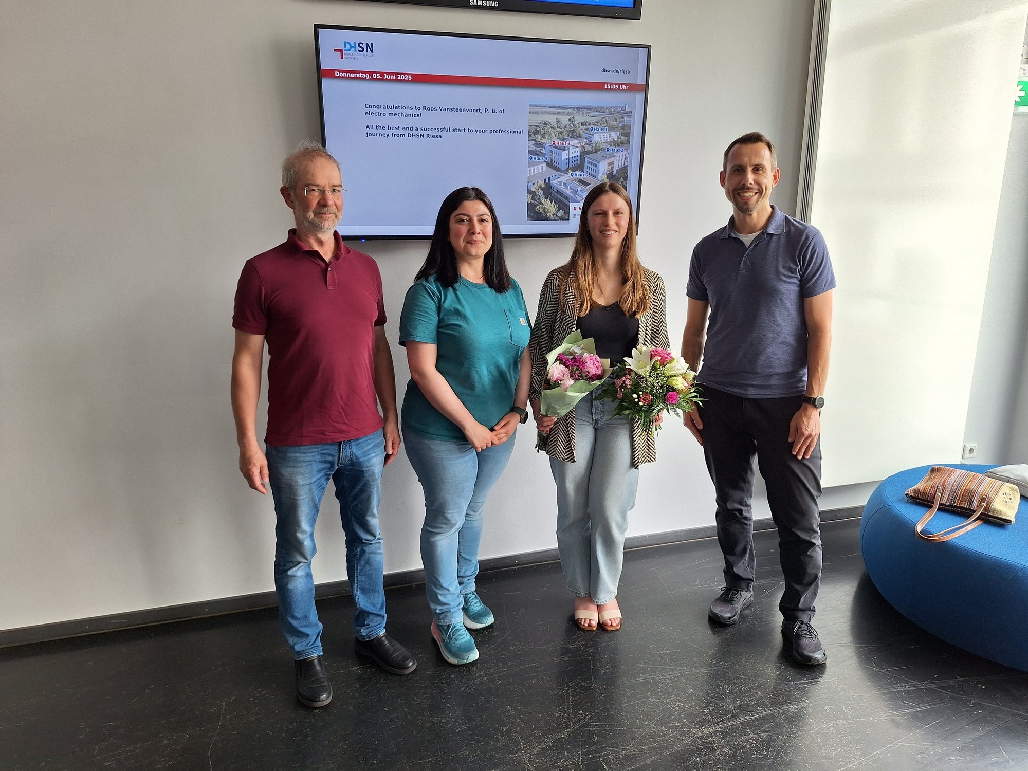 We are proud to announce the successful defense of Roos Vansteenvoort’s project work. During her four-month Erasmus exchange at DHSN Riesa, Roos worked on a thesis titled “Laboratory Live – Concept for structuring, visualization, usage and storage of laboratory data.” In her thesis, Roos explored the various requirements for handling and sharing laboratory data in our engineering departments. With a focus on the Department of Energy and Building Technologies, she analyzed how experimental data, especially from our recently installed Air-Handling-Unit (AHU), is currently used by students. Her research led to some valuable insights and practical tools to store, visualize and share the experimental data. These findings will help expand the use of the AHU in our lectures, cooperative research, and further training activities. Thank you, Roos, for your fresh perspective and the work you have done!